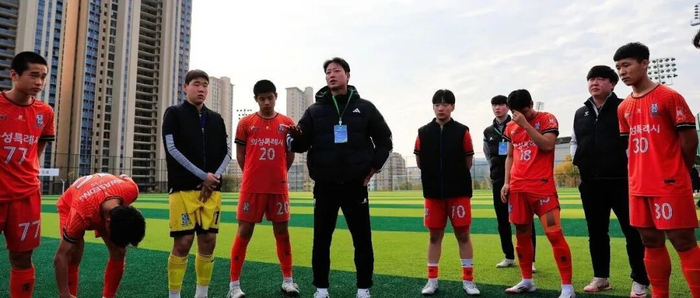 南楠发自江西定南“462杯”第一届中韩青少年足球精英对抗赛第三比赛日,HSFA华城对阵广东铭途的比赛刚开始,球场边出现了两个身穿仁川联训练服的身影,他们正是俱乐部青训总监金是锡和主教练米达尔·朴,此行目的便是近距离观察华城的18号金仝伦——这名已经在韩国小有名气的球员成为四支韩国队伍内部关注度颇高的球员。与浙江队的首场比赛中,金仝伦打入一球助攻一次,是球队获胜的最大功臣。